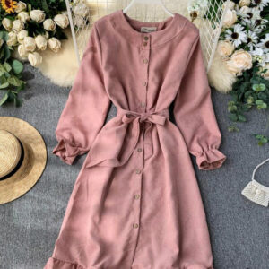 Long Sleeve Ruffle Hem Button Down Dress P307